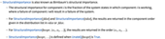 will result in a failure of the system. - For StructuralImportance[fdist] and StructuralImportance[rdist], the results are returned in the component order given in the distribution list in rdist or fdist.