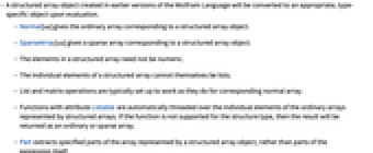 - Functions with attribute Listable are automatically threaded over the individual elements of the ordinary arrays represented by structured arrays. If the function is not supported for the structure type, then the result will be returned as an ordinary or sparse array.