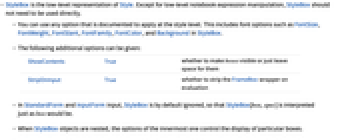 - You can use any option that is documented to apply at the style level. This includes font options such as FontSize, FontWeight, FontSlant, FontFamily, FontColor, and Background in StyleBox.