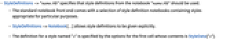 - StyleDefinitions->Notebook[…] allows style definitions to be given explicitly.