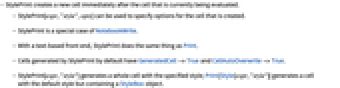 - Cells generated by StylePrint by default have GeneratedCell->True and CellAutoOverwrite->True.