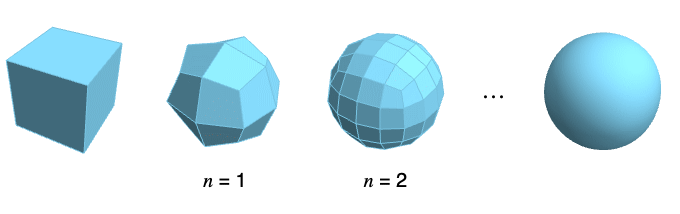 GeodesicPolyhedron subdivides a polyhedron to approximate a sphere: