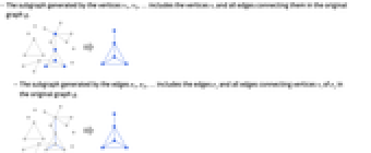 - The subgraph generated by the vertices v1,v2,… includes the vertices vi and all edges connecting them in the original graph g.
