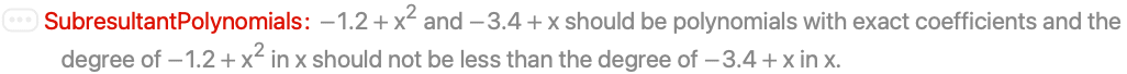 - SubresultantPolynomials require Exponent[poly1,var]≥Exponent[poly2,var].