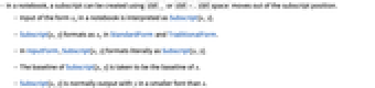 in StandardForm and TraditionalForm. - In InputForm, Subscript[x,y] formats literally as Subscript[x,y].