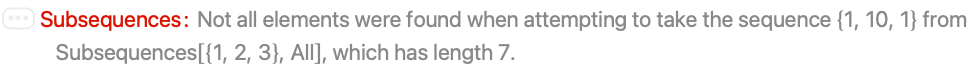 - Subsequences[list,All] is equivalent to Subsequences[list].