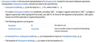 - SubsuperscriptBox is the low-level representation of Subsuperscript. Except for low-level notebook expression manipulation, SubsuperscriptBox should not need to be used directly.
