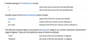 1 returns the next sunrise from the specified date -1 returns the last sunrise from the specified date - Possible values of the ReferenceAltitude option include: