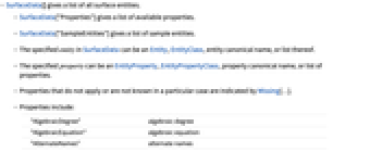 - SurfaceData["SampleEntities"] gives a list of sample entities.