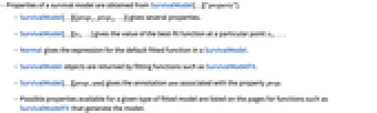 - Possible properties available for a given type of fitted model are listed on the pages for functions such as SurvivalModelFit that generate the model.