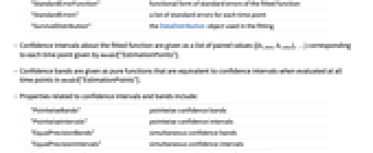 - ConfidenceRange->{tmin,tmax} gives probability-p simultaneous confidence intervals and bands for the fitted function between tmin and tmax.