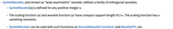- SymletWavelet[n] is defined for any positive integer n.