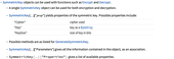 - SymmetricKey[…]["prop"] yields properties of the symmetric key. Possible properties include: