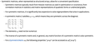 - Symmetric matrices, when represented as structured arrays, allow for a convenient specification.