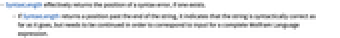 - SyntaxLength effectively returns the position of a syntax error, if one exists.