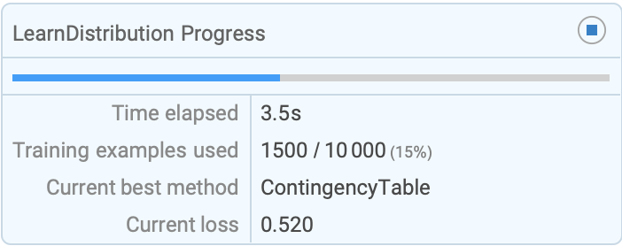 "Multinormal" use a multivariate normal (Gaussian) distribution "ContingencyTable" discretize data and store each possible probability "KernelDensityEstimation" use a kernel mixture distribution "DecisionTree" use a decision tree to compute probabilities "GaussianMixture" use a mixture of Gaussian (normal) distributions - Possible settings for strategy include: