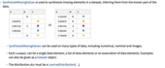 - SynthesizeMissingValues can be used on many types of data, including numerical, nominal and images.