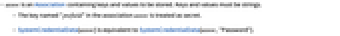 - The key named "pwfield" in the association assoc is treated as secret.