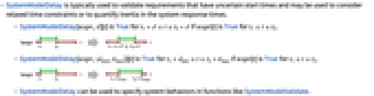 - SystemModelDelay is typically used to validate requirements that have uncertain start times and may be used to consider relaxed time constraints or to quantify inertia in the system response times.