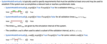 - SystemModelEventually[t,texpr[t]] is True if texpr[t] is True for a validation time
