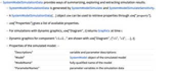 - A SystemModelSimulationData[…] object sim can be used to retrieve properties through sim["property"].