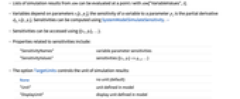 "SensitivityNames" variable parameter sensitivities "SensitivityValues" sensitivities {{vi,pi}->gi,j,…} - The option TargetUnits controls the unit of simulation results: