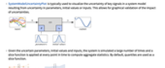 - SystemModelUncertaintyPlot is typically used to visualize the uncertainty of key signals in a system model resulting from uncertainty in parameters, initial values or inputs. This allows for graphical validation of the impact of uncertainties.