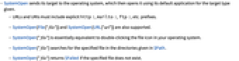 - SystemOpen[File["file"]] and SystemOpen[URL["url"]] are also supported.