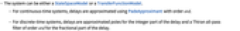 - For continuous-time systems, delays are approximated using PadeApproximant with order ord.