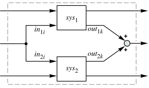 connects the systems models sys1 and sys2 in parallel.