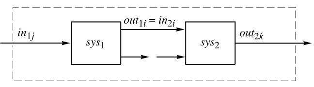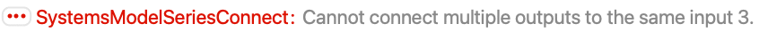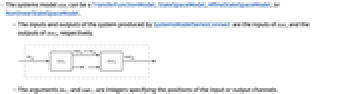 - The inputs and outputs of the system produced by SystemsModelSeriesConnect are the inputs of sys1 and the outputs of sys2, respectively.