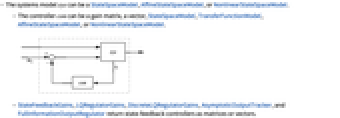 - The controller con can be a gain matrix, a vector, StateSpaceModel, TransferFunctionModel, AffineStateSpaceModel, or NonlinearStateSpaceModel.