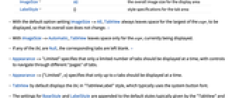 - Appearance->{"Limited",n} specifies that only up to n tabs should be displayed at a time.