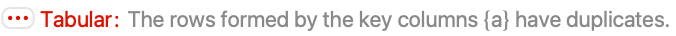 A column with duplicates cannot be used as the "KeyColumns" value of a tabular:
