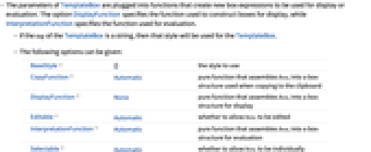 - The parameters of TemplateBox are plugged into functions that create new box expressions to be used for display or evaluation. The option DisplayFunction specifies the function used to construct boxes for display, while InterpretationFunction specifies the function used for evaluation.