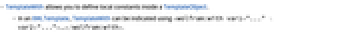 - TemplateWith allows you to define local constants inside a TemplateObject.
