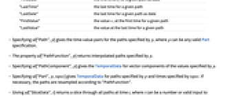 - Specifying td["Part",p,tspec] gives TemporalData for paths specified by p and times specified by tspec. If necessary, the paths are resampled according to "PathFunction".