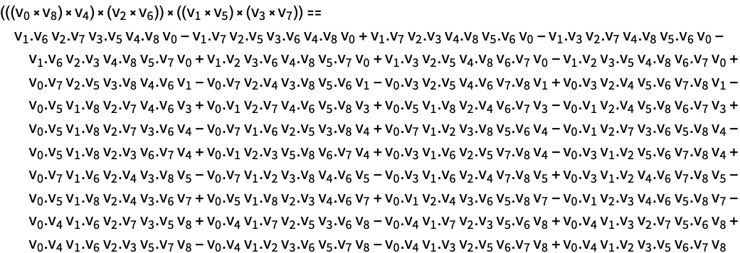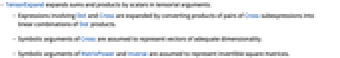- Expressions involving Dot and Cross are expanded by converting products of pairs of Cross subexpressions into linear combinations of Dot products.