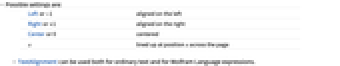 Wolfram Research (1996), TextAlignment, Wolfram Language function, https://reference.wolfram.com/language/ref/TextAlignment.html.
