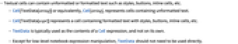 - Cell[TextData[expr]] represents a cell containing formatted text with styles, buttons, inline cells, etc.