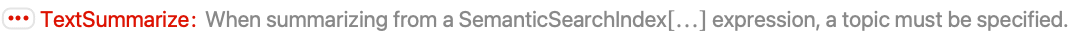 - Generating a summary from a SemanticSearchIndex[…] requires a topic specification.