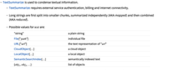 - TextSummarize requires external service authentication, billing and internet connectivity.