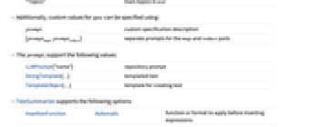 LLMPrompt["name"] repository prompt StringTemplate[…] templated text TemplateObject[…] template for creating text - TextSummarize supports the following options: