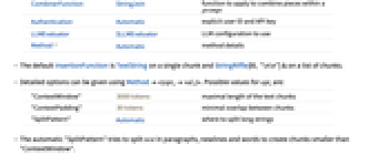 minimal overlap between chunks "SplitPattern" Automatic where to split long strings - The automatic "SplitPattern" tries to split text in paragraphs, newlines and words to create chunks smaller than "ContextWindow".