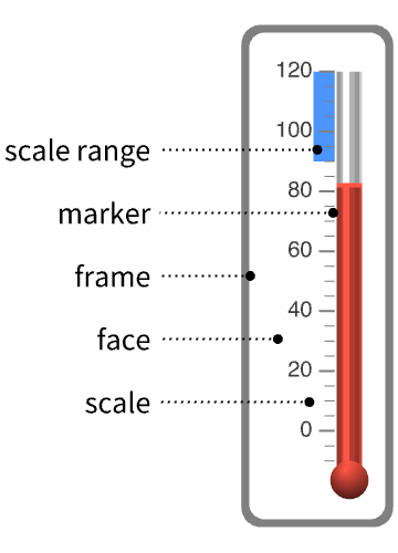 axis etc. - ThermometerGauge by default uses a filled liquid appearance for the marker.