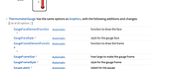 - ThermometerGauge has the same options as Graphics, with the following additions and changes: [List of all options]