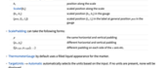 Top,Bottom,Left,Right,Center positions within the dial bs position along the scale Scaled[bs] scaled position along the scale {bx,by} scaled position {bx,by} in the gauge {pos,{lx,ly}} scaled position {lx,ly} in the label at general position pos in the gauge - ScalePadding can take the following forms: