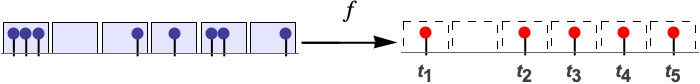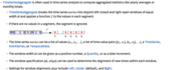 - TimeSeriesAggregate breaks the time series tseries into disjoint left-closed and right-open windows of equal width dt and applies a function f to the values in each segment.