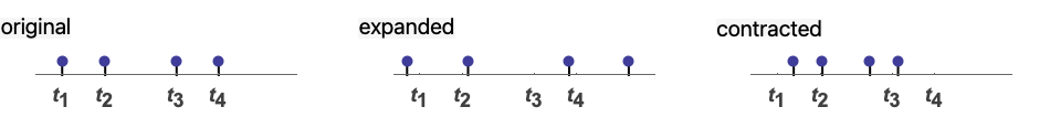 - TimeSeriesRescale works on a multipath TemporalData as a whole, preserving the ratios of the distances between times across the paths.