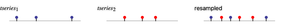 - If the times for the tseriesi are not equivalent, they are each resampled using the union of their times.